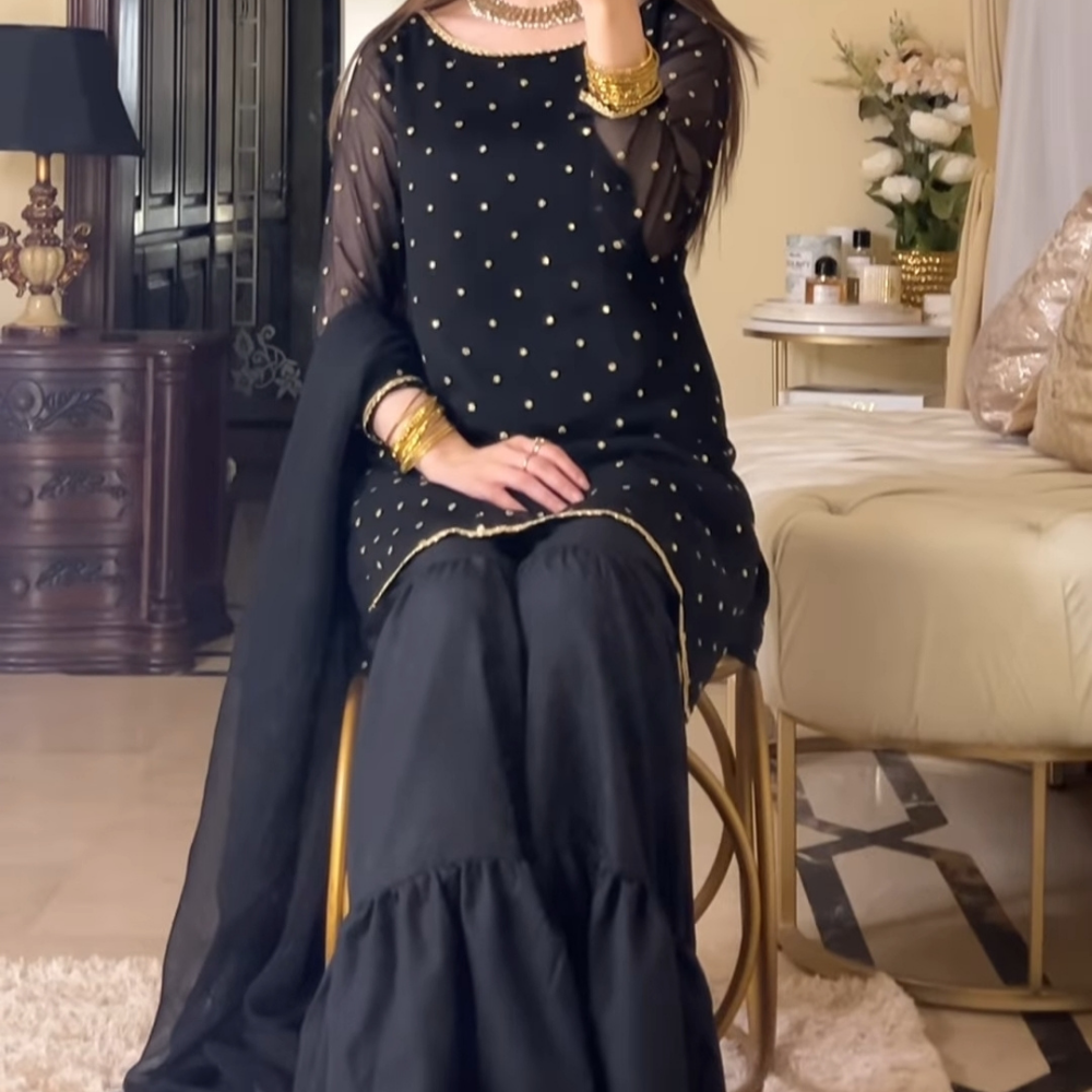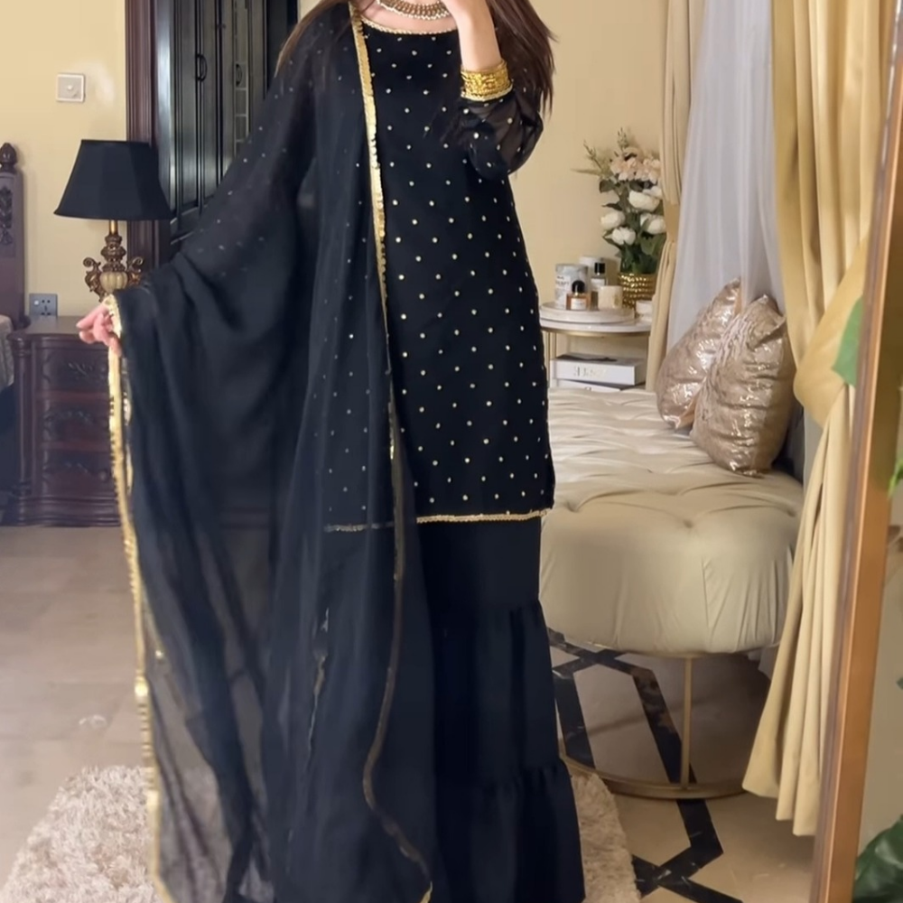 Be the first to review “Lightweight Black Chiffon Sharara Set”